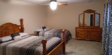 The 2nd guests bedroom provides a queen, a double and 2 single beds. There's also huge closets in each bedroom.