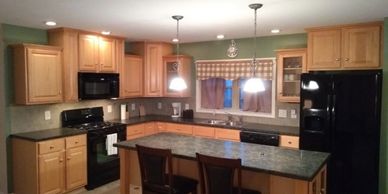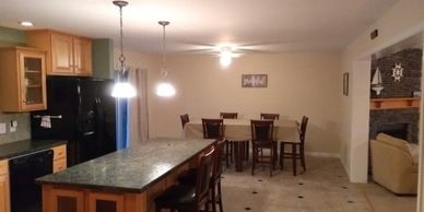 With an island sitting 2 guests and the pub style dining set sitting 6 guests, there's room for everyone.