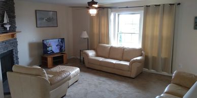 Home is fully furnished including flat screen TV, and full stone gas fireplace in living room.
